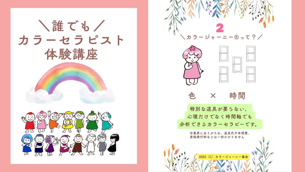 次回、第3回目のカラーセラピスト体験講座は3月21日(土)13:00~15:00を予定しています。
