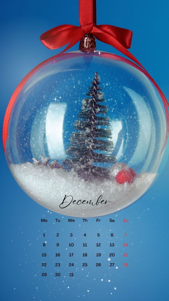 ④のカレンダーもブルーをメインに使ったデザインですが、こちらの印象はまた違いますね。青も背景に、赤いリボンが印象的なデザインです。